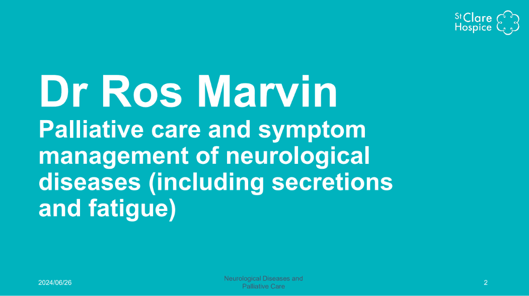 Dr Ros Marvin: Palliative care and symptom management of neurological diseases (including secretions and fatigue)